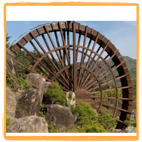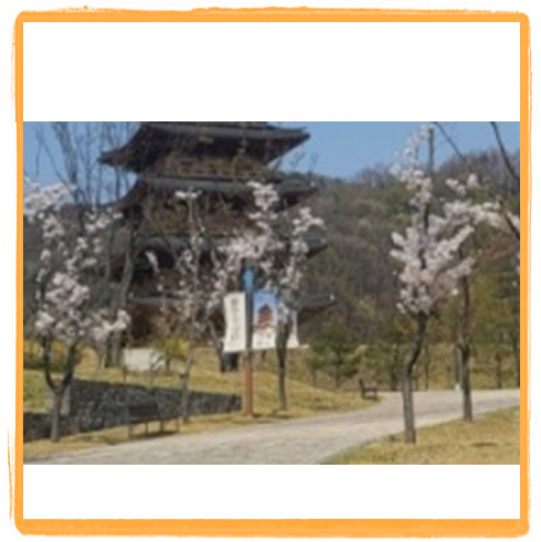 방문하게 된다면 황악산과 이곳 동선 연결해서 이동하시기 바랍니다. 이곳에 가면 사명대사공원을 대표하고 있는 큰 평화의 탑과 물레방아를 볼 수 있습니다. 또한, 한복을 직접 입고 체험할 수 있는 체험존도 마련되어 있습니다. 이곳 공원 여기저기가 고즈넉한 분위기를 연출하므로 한복입고 예쁜 사진도 찍어보시기 바랍니다.